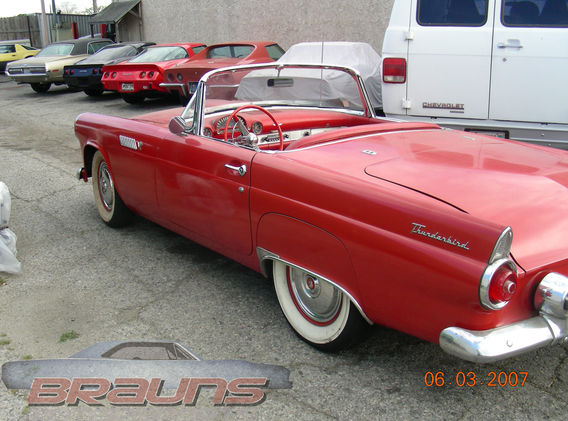 This T bird has a rare factory supercharged 312 engine. We rebuilt the supercharger and created a custom aluminum fresh air intake system color matched to the exterior. This is a rare bird!